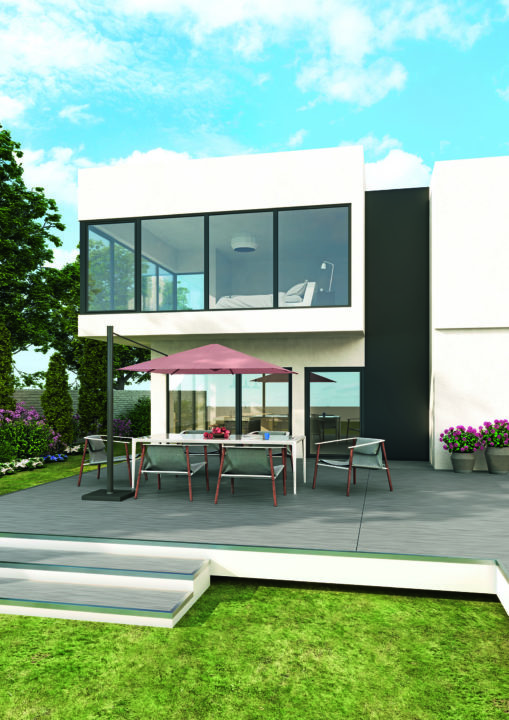 Harmonijne wykończenie elewacji: dostępne są różne produkty dopasowane do systemu Elegant, np. drzwi podnoszono-przesuwne HST, system fasadowy, system rolet PROtex 2.0